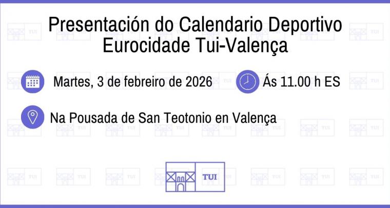 Mañá martes, 3 de febreiro, ás 11.00 horas españolas, na Pousada de San Teotonio de Valença, terá lugar a presentación do Calendario Deportivo Eurocidade Tui-Valença 2026. Nesta...