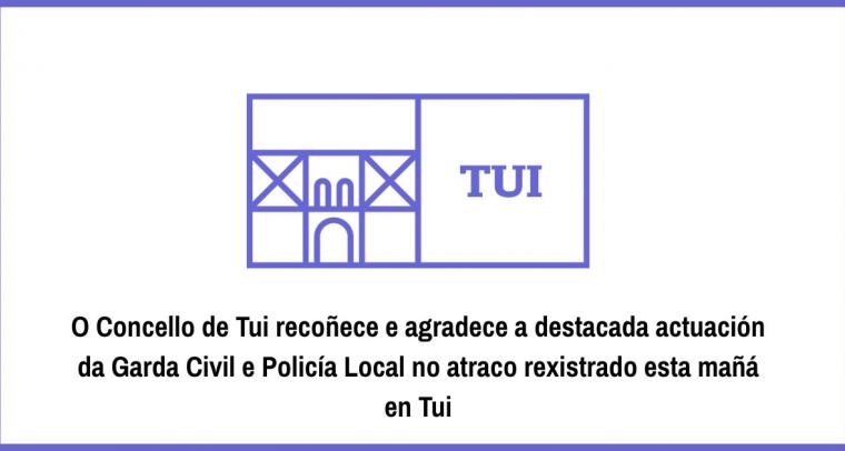 O alcalde de Tui, Enrique Cabaleiro, en nome da corporación municipal, quere transmitir o seu agradecemento á Garda Civil e á Policía Local pola súa destacada e exemplar actuación...