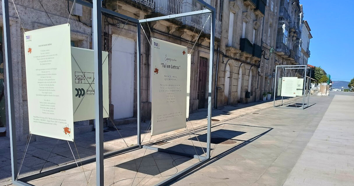 O paseo da Corredoira acolle estes días unha exposición de oito poemas cunha temática vinculada con Tui. Esta mostra de poemas de oito autores e autoras titulada “Tui en Letras”, está organizada pola Biblioteca Municipal tudense, co obxectivo de achegar a literatura á veciñanza no espazo público.