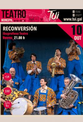 O venres, 10 de outubro, ás 21 h Ibuprofeno Teatro representará no Teatro Municipal de Tui “Reconversión”. É un espectáculo de gran formato escrito e dirixido por Santiago...