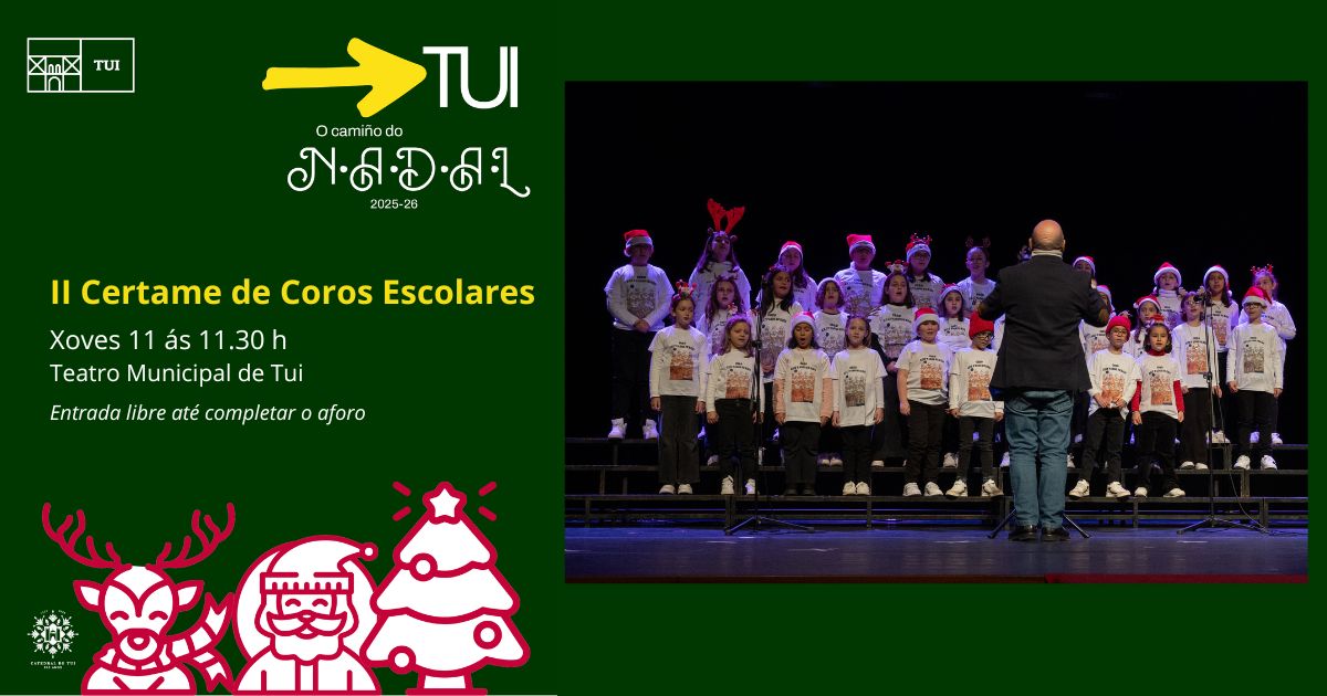 Un total de 308 alumnos e alumnas de centros educativos de Tui unirán as súas voces no II Certame de Coros Escolares que se celebra mañá xoves, 11 de decembro, ás 11.30 h no Teatro Municipal de Tui, dentro da programación “O Camiño do Nadal”.