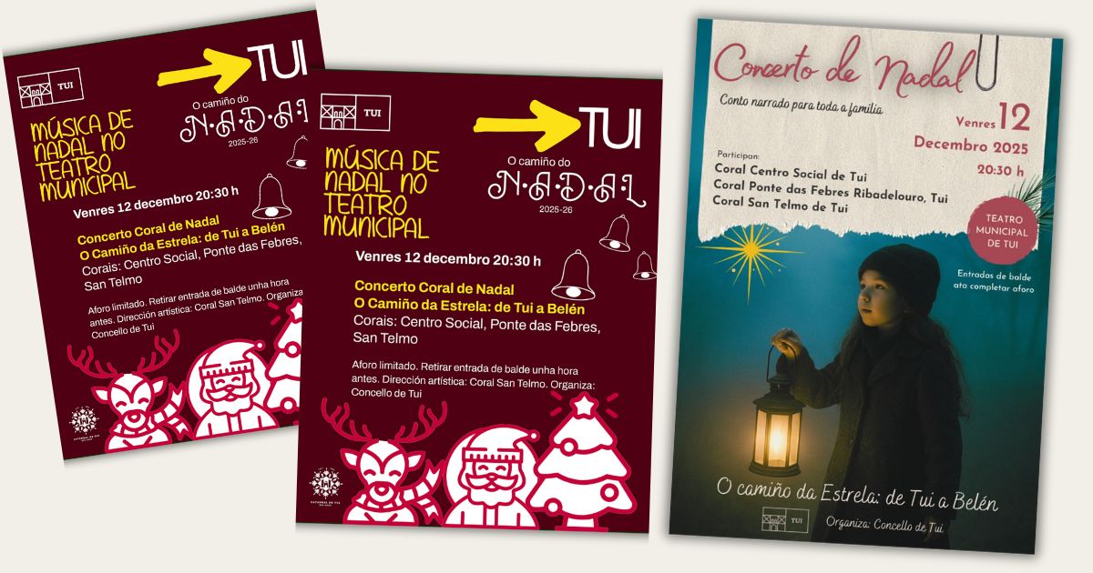 Organizado polo Concello de Tui e baixo a dirección artística da Coral San Telmo, este concerto emula a viaxe que emprende unha nena tudense a través da súa historia narrada e coa música das tres corais, que irán actuando en cada capítulo do conto de Nadal. Como peche, actuarán as tres corais xuntas.