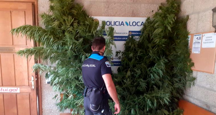 A Policía Local de Tui, en colaboración coa Garda Civil, interveu unha plantación de marihuana en Ribadelouro, incautando 15 plantas.
