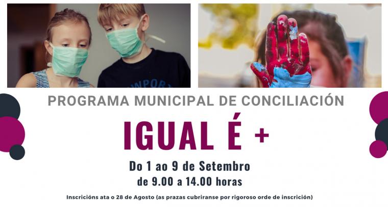Do 1 ao 9 de setembro vaise desenvolver o Programa de Conciliación "IGUAL É +” dirixido a nenos e nenas de 3 a 12 anos empadroados no concello de Tui. A Concello de Tui, a través...