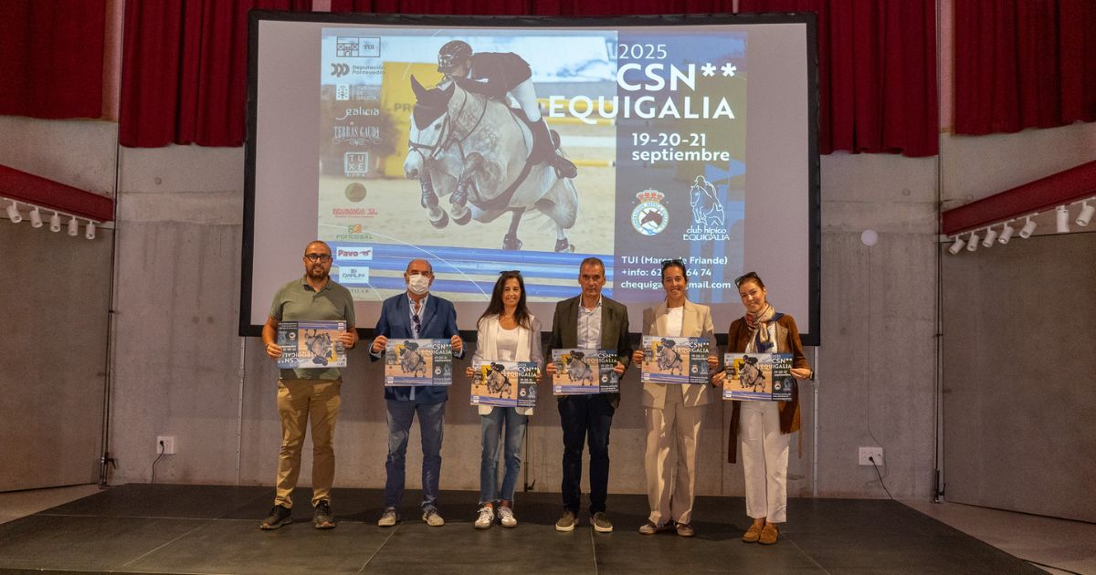 Asistiron á presentación este mediodía o alcalde de Tui, Enrique Cabaleiro, o concelleiro de Deportes de Tui, Rafael Estévez, o vicepresidente da Federación Hípica Galega, Gonzalo Autran, a presidenta do Club Hípico Equigalia, Elvira Crespo, a directora do concurso, Paula López e a secretaria do club, Natalia Blanco.