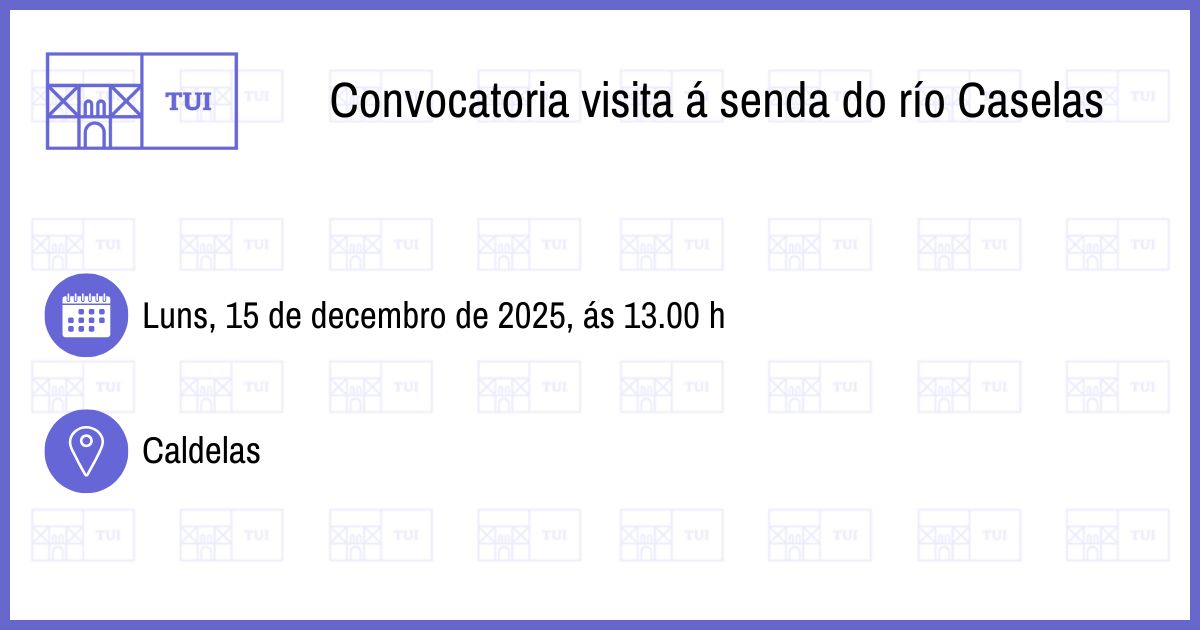O próximo luns, 15 de decembro, ás 13.00 h o alcalde de Tui, Enrique Cabaleiro, e o presidente da Confederación Hidrográfica do Miño-Sil, Jose Antonio Quiroga, visitarán a senda do río Caselas, tras o remate das obras executadas ao abeiro do convenio establecido entre o Concello de Tui e a Confederación Hidrográfica do Miño-Sil, CHMS, que supuxeron un investimento de 935 mil euros.