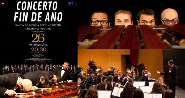 O venres, 26 de decembro, ás 20.30 h, no Teatro Municipal celebrarase o Concerto de Fin de Ano a cargo da Banda de Música Popular de Tui e do grupo Píscore...