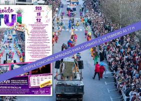Tui apraza a celebración do seu Desfile-concurso de Entroido para o próximo sábado, 21 de febreiro, ás 17 h. A decisión responde á adversa previsión meteorolóxica para mañá martes...