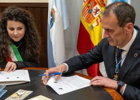 O alcalde de Tui, Enrique Cabaleiro, e a rexedora de Viterbo, Chiara Frontini, asinaron onte na casa do concello un protocolo de intencións, entre ambos municipios. No mesmo...