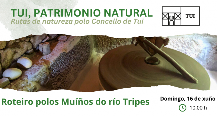 Este domingo, 16 de xuño, proseguen as Rutas de Natureza organizadas polo Concello de Tui cun percorrido pola senda dos muíños do Tripes. O punto de partida será a área recreativa...