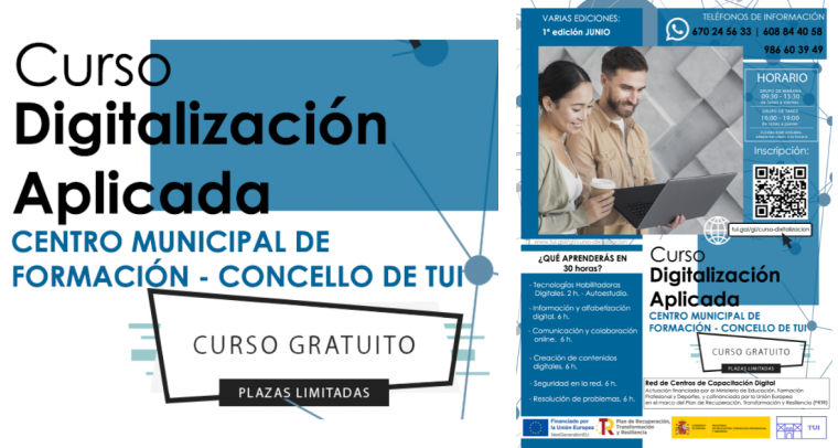 Entre xuño e novembro o Concello de Tui vai impartir un curso de “Dixitalización Aplicada”. Haberá seis quendas cunha duración de 30 horas lectivas cada quenda.