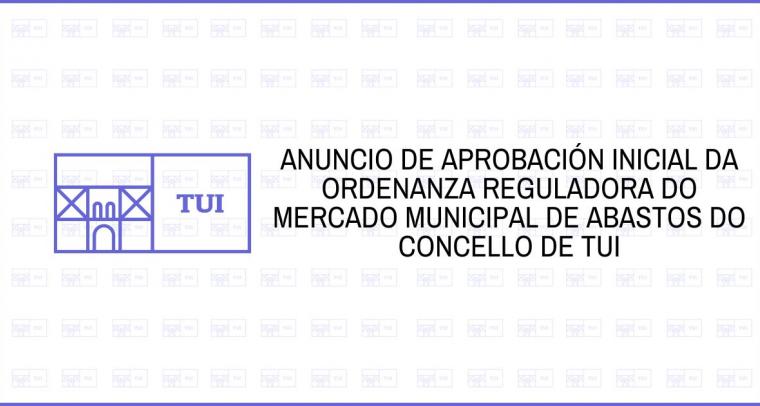 Aprobada inicialmente a Ordenanza reguladora do Mercado Municipal de Abastos do Concello de Tui por acordo do Pleno de data 1 de abril de 2024, queda exposto ó público o...