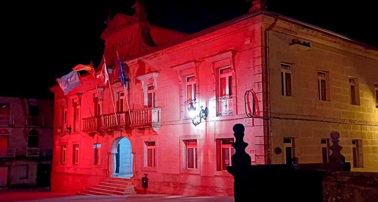 A casa do concello de Tui iluminouse de vermello esta pasada noite con motivo do Día Mundial da Hemofilia, que se conmemorou onte 17 de abril.
