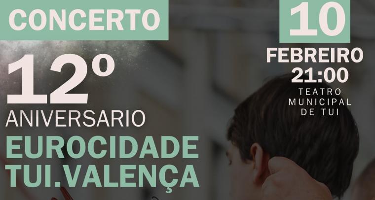 A Eurocidade Tui-Valença celebrará o seu décimo segundo aniversario o próximo sábado, 10 de febreiro, ás 21 h no Teatro Municipal de Tui nun concerto a cargo de catro agrupacións...