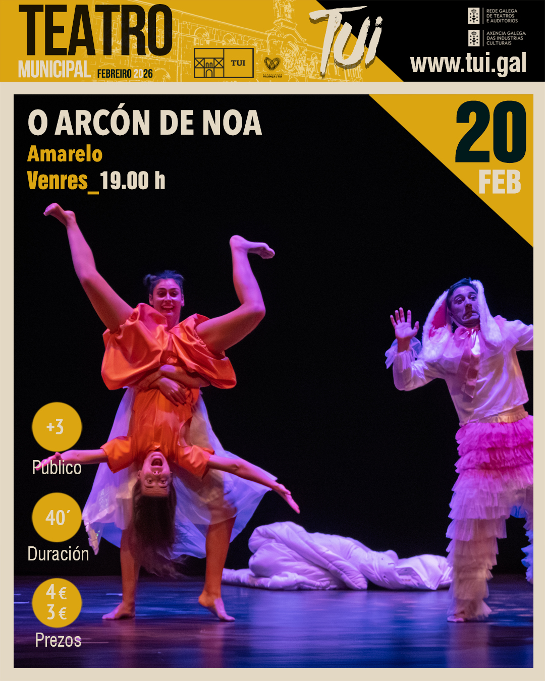“O Arcón de Noa” é o título do espectáculo de danza que Amarelo presentará o venres, 20 de febreiro, ás 19 h, no Teatro...