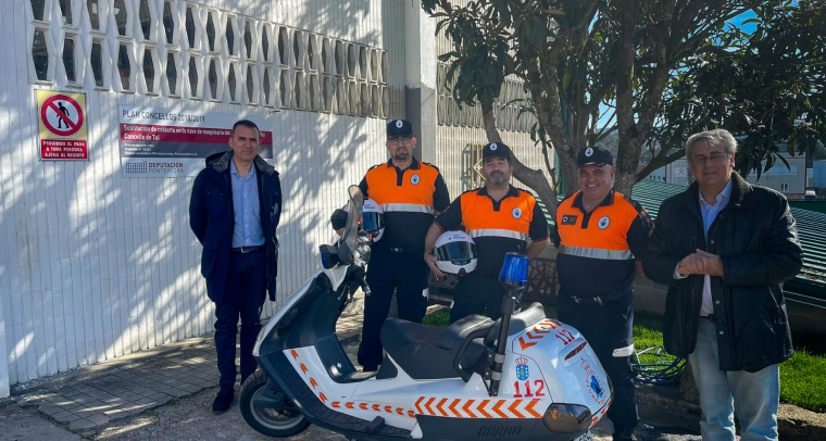 A agrupación de voluntarios de Protección Civil de Tui vén de incrementar o seu parque móbil cunha scooter 150 entregada hai uns días polo Concello a este colectivo.