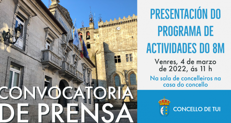 Mañá venres, 4 de marzo, ás 11 h na sala de concelleiros da casa do concello de Tui terá lugar a presentación do programa de actividades organizado polo Concello de Tui con motivo...