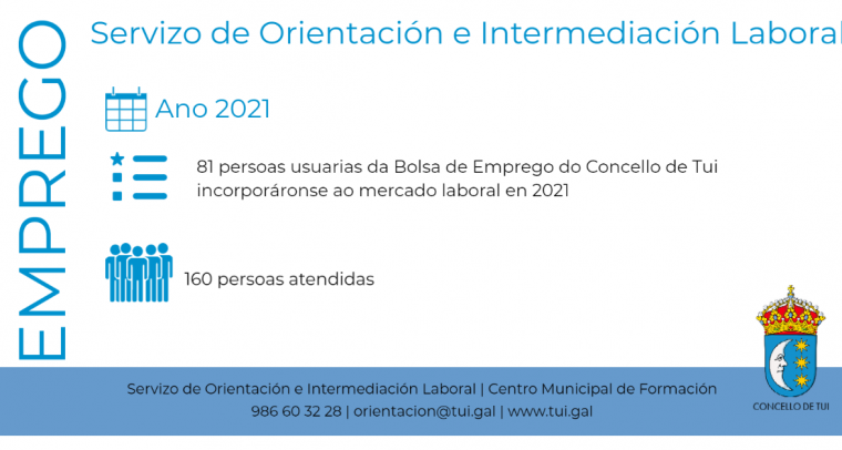 O 50,6% das persoas que ao longo do ano 2021 se incorporaron á Bolsa Municipal de Emprego Tui insertáronse no mercado local. En concreto foron 81 das 160 persoas atendidas no...