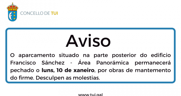 O luns, 10 de xaneiro, esatrá pechado o aparcamento situado na parte posterior do edificio Francisco Sánchez - Área Panorámica, por obras de mantemento do firme.