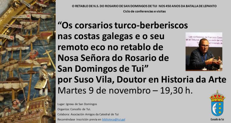 O próximo martes, 9 de novembro, ás 19.30 h a igrexa de San Domingos acollerá a derradeira conferencia do ciclo organizado polo Concello de Tui en torno ao retablo de Nosa Señora...