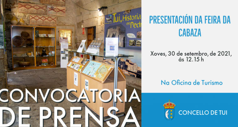 Mañá xoves, 30 de setembro, ás 12.15 h na Oficina de Turismo, na praza de San Fernando, terá lugar a presentación da Feira da Cabaza que se vai celebrar no mes de outubro en Tui....