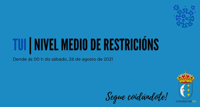 Dende ás 00 h do sábado, 28 de agosto, Tui pasa ao nivel medio de restricións.