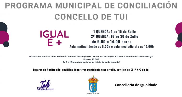 O Concello de Tui, a través das concellerías de Igualdade e Deportes, realizará durante o mes de xullo o Campamento de Verán “Igual é +” Tui 2021.