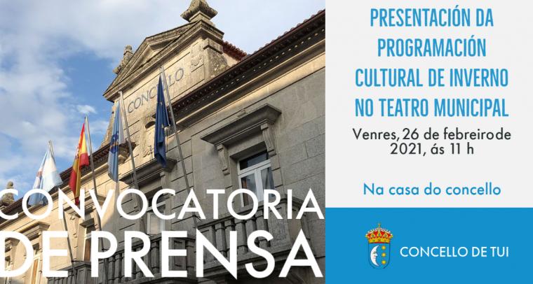 Mañá venres, 26 de xaneiro, ás 11 h terá lugar no salón de sesión da casa do concello de Tui a presentación da programación cultural de inverno a celebrar no Teatro Municipal...