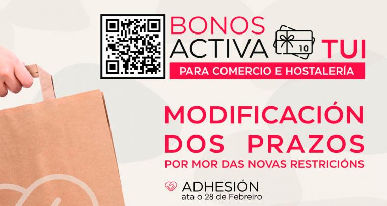 O Concello de Tui vén de modificar os prazos establecidos inicialmente na campaña Activa Tui ante as novas medidas restritivas que entraron en vigor esta semana e que afectan...