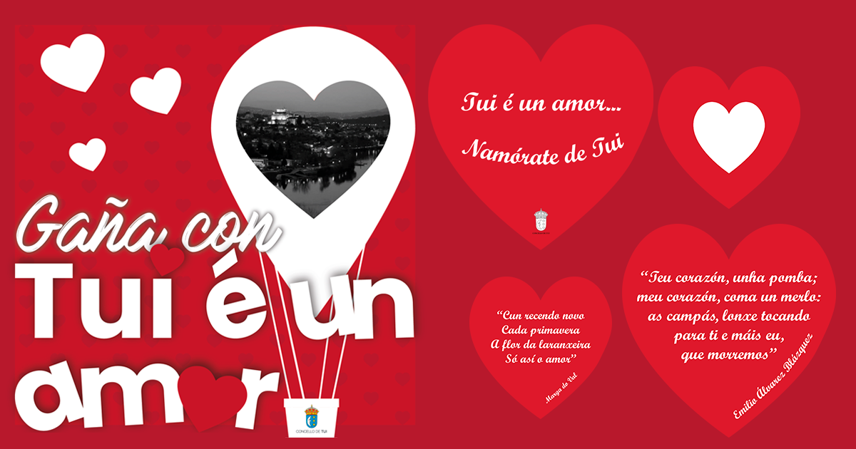 As concellerías de Comercio e de Turismo do Concello de Tui coa colaboración do comercio local teñen en marcha a campaña “Tui é un amor. Namórate de Tui” co gallo do Día dos Namorados.. O obxectivo da mesma é fomentar as compras no comercio local con motivo da celebración do Día dos Namorados e promocionar turisticamente a cidade.