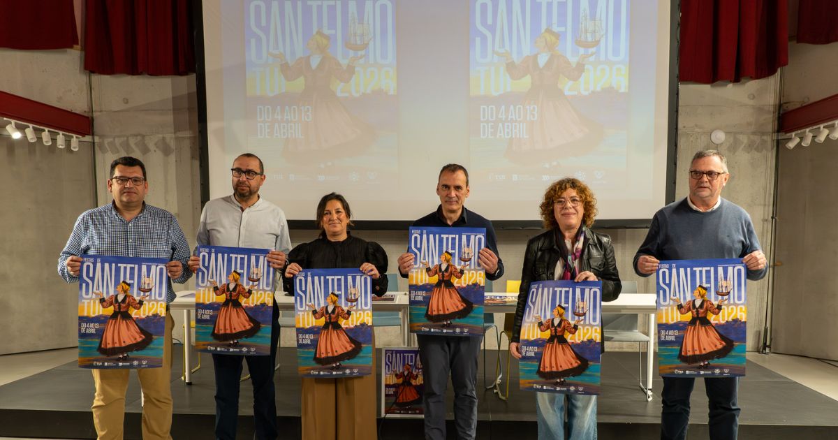 O programa oficial de San Telmo 2026, está xa dispoñible en tui.gal, e está recollido nun programa de man que se distribuirá en todas as vivendas do municipio, e estará dispoñible nos establecementos comerciais. Seguindo a imaxe do cartel deste ano obra do tudense Carlos Fer recóllese día a día a programación prevista entre o sábado 4 e o luns 13 de abril.