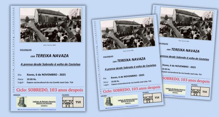 O Instituto de Estudos Agrarios Mártires de Sobredo (IEAMSo), no marco do Mes da Memoria que promove o Concello de Tui, organiza este xoves, 6 de novembro, ás 19.30 h un coloquio...