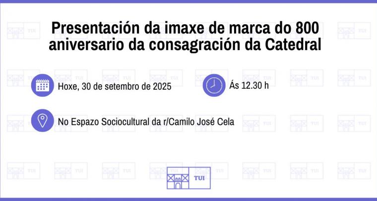 O Concello de Tui presentou este mediodía, no Espazo Sociocultural da rúa Camilo José Cela, a imaxe de marca da conmemoración do 800 aniversario da consagración da Catedral de Tui...