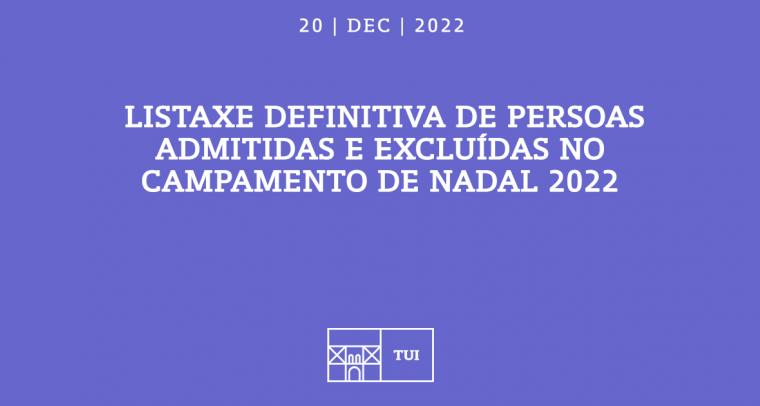 A continuación pode consultarse a listaxe definitiva de persoas admitidas e excluídas no campamento de nadal 2022