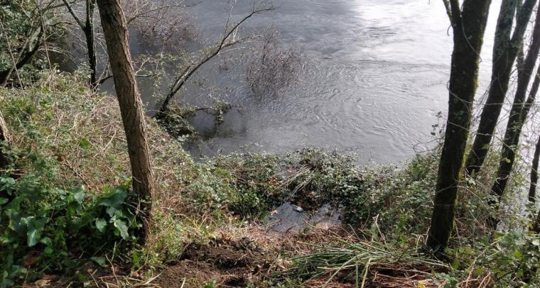 Axentes da Policía Local de Tui rescataron este martes, 27 de decembro, a primeira hora a tarde a unha muller que caera por un talude duns catro metros ao río Miño en Caldelas.