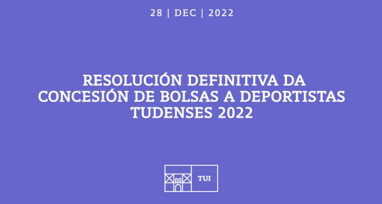 Vén de publicarse a resolución definitiva da concesión de bolsas a deportistas tudenses 2022 que se pode consultar no seguinte enlace.