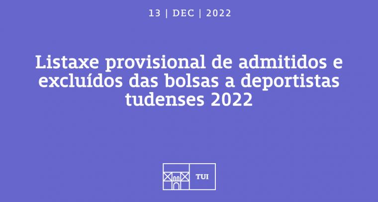 A continuación pode consultarse a listaxe definitiva de solicitudes admitidas e excluídas das bolsas a deportistas tudenses 2022
