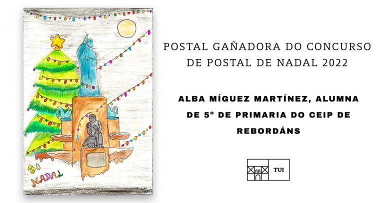 A postal presentada pola alumna de 5º curso de Educación Primaria do CEIP de Rebordáns, Alba Míguez Martínez, acadou o primeiro premio do Concurso de Postal de Nadal 2022...