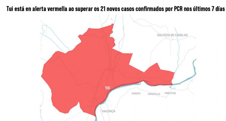 Tui volve estar en nivel de alerta vermella ao superar os 21 novos casos confirmados por PCR nos últimos 7 días. Na fin de semana, o sábado e domingo o municipio situouse en...