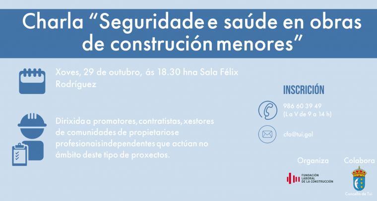 A Sala Félix Rodríguez da Área Panorámica acollerá o xoves, 29 de outubro, ás 18.30 h unha charla titulada “Seguridade e saúde en obras de construción menores”. Está organizada...
