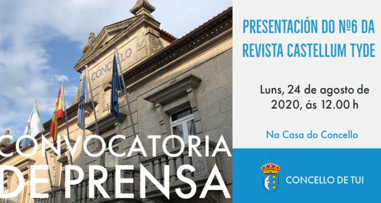 O próximo luns, 24 de agosto, ás 12 h na terá lugar no salón de sesións da casa do concello de Tui a presentación do número 6 da revista “Castellum Tyde” editada polo Instituto de...