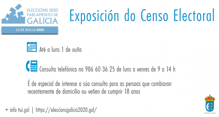 Dende o día 25 de maio ata o 1 de xuño, ambos os dous incluídos, os electores poderán consultar os seus datos de inscrición no censo electoral que estará vixente nas eleccións ao...