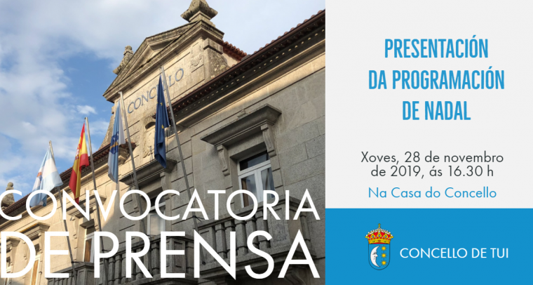Mañá xoves, 28 de novembro, ás 16.30 h na sala de reunións da casa do concello de Tui presentarase a programación de Nadal organizada polo Concello de Tui. Comparecerán ante os...
