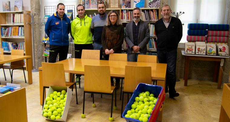 Os responsables de dous clubs deportivos tudenses, Pablo García do Club de Tenis Tui e Juan Carlos Feijoo e Miguel de la Calle do Club de Padel8, entregaron esta mañá á Biblioteca...