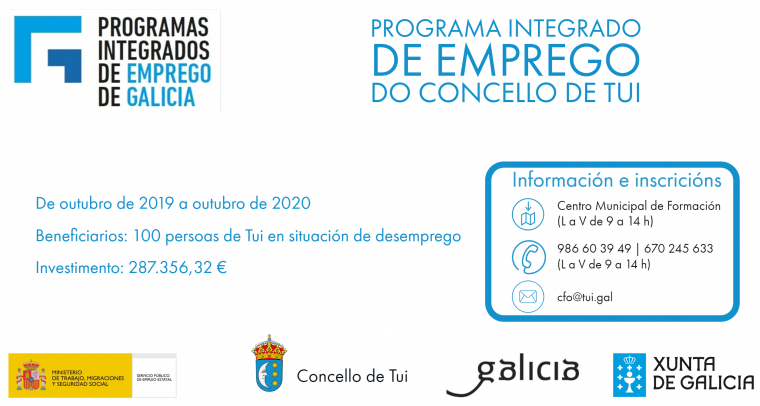 Un centenar de persoas desempregadas de Tui poderán beneficiarse do Programa Integrado de Emprego do Concello de Tui, que a Consellería de Economía, Emprego e Industria da Xunta...