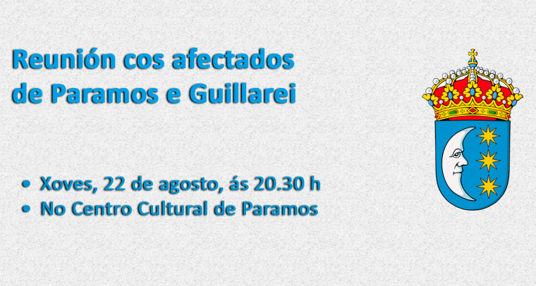 Este xoves, 22 de agosto, ás 20.30 h no Centro Cultural de Paramos o alcalde de Tui, Enrique Cabaleiro, vaise reunir cos membros da Asociación de Afectados de Paramos e Guillarei...