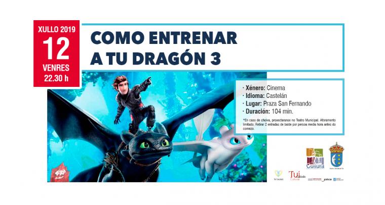 A proxección da película “Cómo entrenar a tu dragon 3” abre este venres, 12 de xullo, o ciclo “Cinema de Verán” en Tui. A cita será ás 22.30 h na praza de San Fernando.