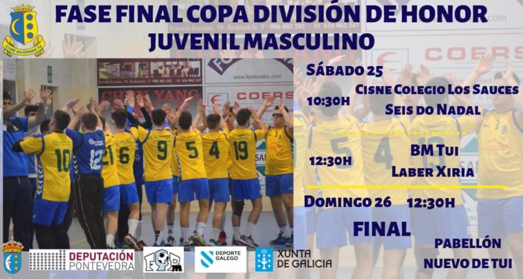 O Concello de Tui será a sede da Fase Final da Copa División de Honra Xuvenil Masculina de balonmán, que se disputará esta fin de semana no novo pavillón deportivo municipal de...