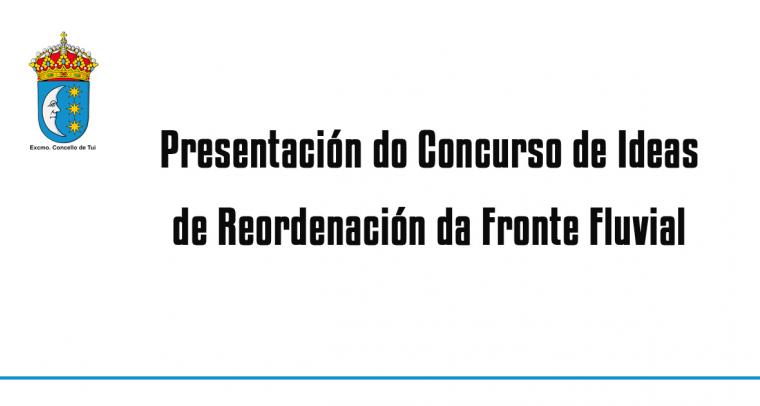 Mañá martes, 21 de maio, ás 11.00h terá lugar na sala de concelleiros do Concello de Tui a presentación do Concurso de Ideas para a Reordenación da fachada fluvial de Tui....