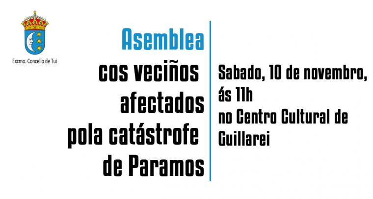 O alcalde de Tui, Carlos Vázquez Padín, reunirase este sábado cos veciños afectados pola catástrofe de Paramos. Será en asemblea que convoca para este sábado, 10 de novembro, ás...